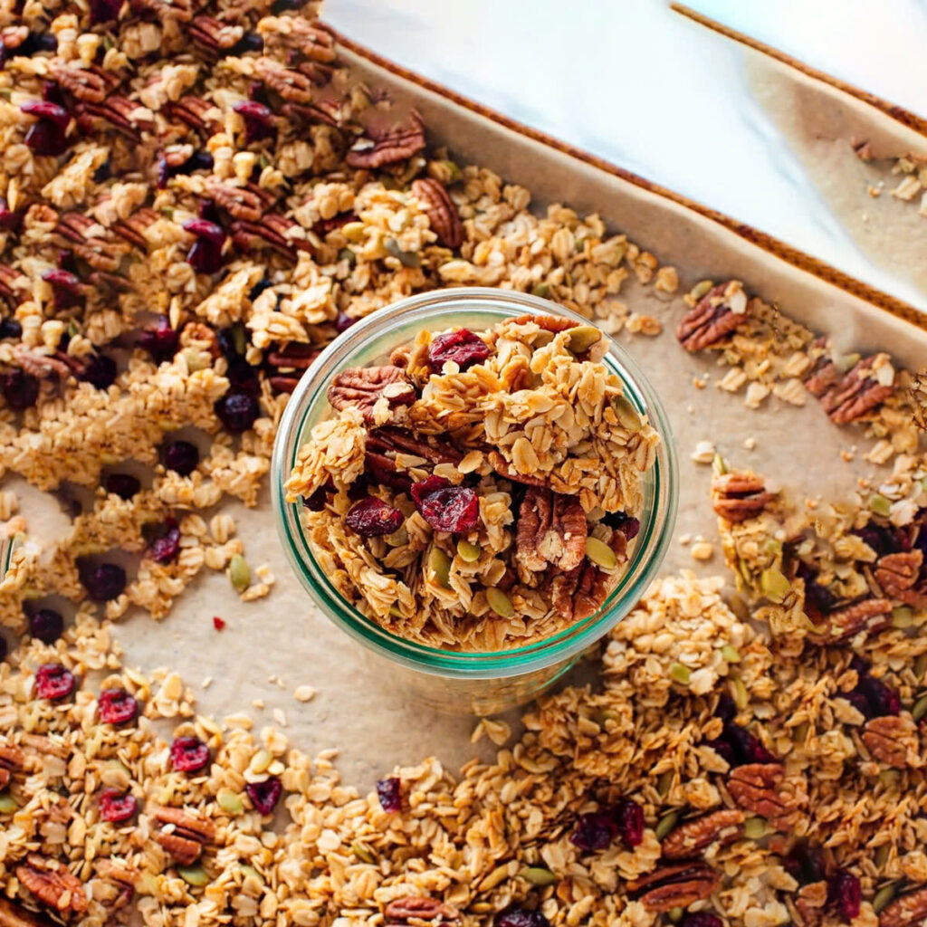 - Thay vì bánh kẹo chứa đường và chất bảo quản, granola là một món ăn vặt bổ dưỡng, hỗ trợ tiêu hóa và tăng cường tập trung.